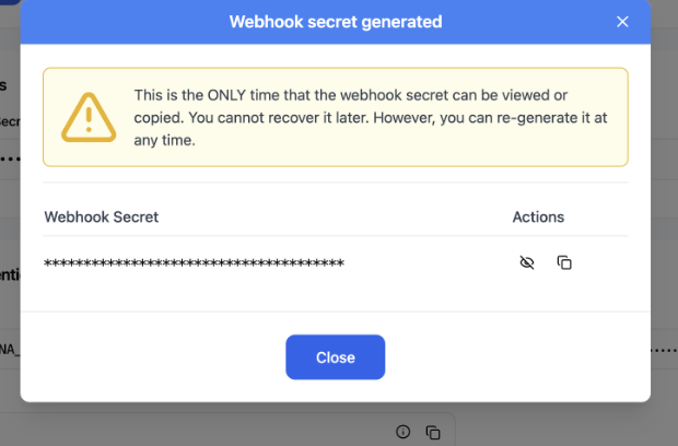 - Click on regenerate icon in front of webhook secret key